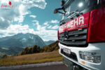 Das Hilfeleistungsfahrzeug 2 nach der Richtlinie Steiermark verfügt über einen 2000 Liter Löschwassertank und eine leistungsstarke Einbaupumpe. Für den raschen Ersteinsatz bei der Brandbekämpfung stehen ein Schnellangriff heckseitig sowie eine Frontangriffseinrichtung zur Verfügung. Auch die 30 m Schaumschnellangriffseinrichtung ist inzwischen bei vielen Tankern wie jenen der Feuerwehr Irdning schon Standard. Schnell gibt’s übrigens auch Strom dort, wo man ihn braucht, es für diesen Zweck eine 30 m Strom-Schnellhaspel gibt. Ein großes Thema ist Strom wiederum nicht beim Thema der Beleuchtung bei Einsätzen während der Nacht. Neben der obligaten Umfeldbeleuchtung steht ein flexibler Lichtmast zur Verfügung. Dass es sich hierbei um LED-Technik handelt, sollte heute schon selbsterklärend sein. Den notwendigen Saft für die externen Geräte liefert ein Rosenbauer RS 14 Stromerzeuger.