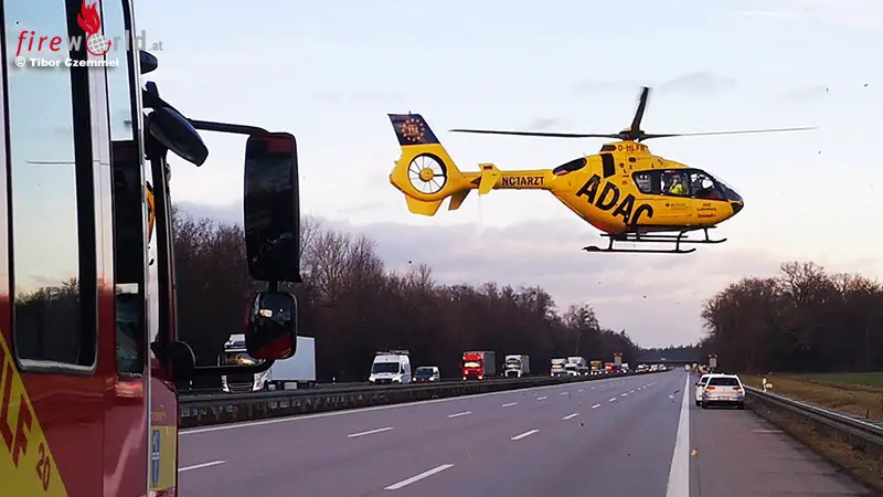 Der Fahrer des Lkw wurde vom Rettungsdienst und unterstützt von der Feuerwehr in seiner Fahrerkabine versorgt. Mit hydraulischem Rettungsgerät mussten die Fahrer- und Beifahrertür des LKW entfernt werden. Nach der Stabilisierung des Fahrers und der Rettung wurde dieser mit dem Rettungshubschrauber in eine Klinik verbracht. Der andere Fahrer, des an dem Unfall mitbeteiligten LKW, wurde vom Rettungsdienst betreut. Bei dem zweiten Unfall kam es lediglich zu einem Schaden an beiden Fahrzeugen.