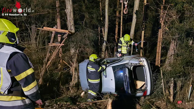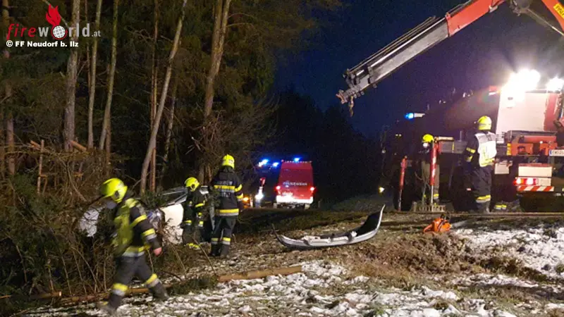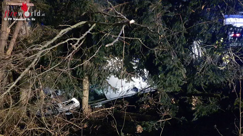 Um das Unfall-KFZ bergen zu können, wurden einige Bäume entfernt und das schwere Rüstfahrzeug (SRF) der FF Neudorf bei Ilz nachalarmiert.