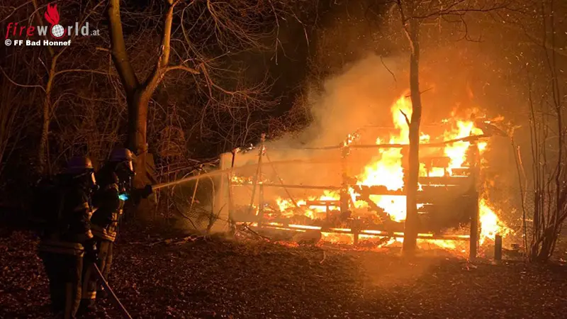 BAD HONNEF (DEUTSCHLAND): In den frühen Morgenstunden des 22. Jänner 2021 wurde die Freiwillige Feuerwehr Bad Honnef zu einem Flächenbrand alarmiert. Bei Ankunft der ersten Einsatzkräfte stellte sich aber heraus, dass es sich um eine große Holzhütte handelte, die bereits im Vollbrand stand.