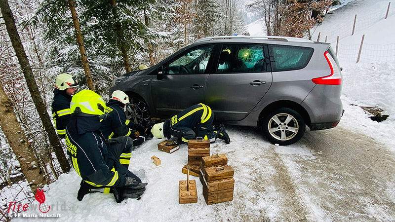 Oö: Fahrzeug abgerutscht → wieder Fahrzeugbergung in Maria Neustift