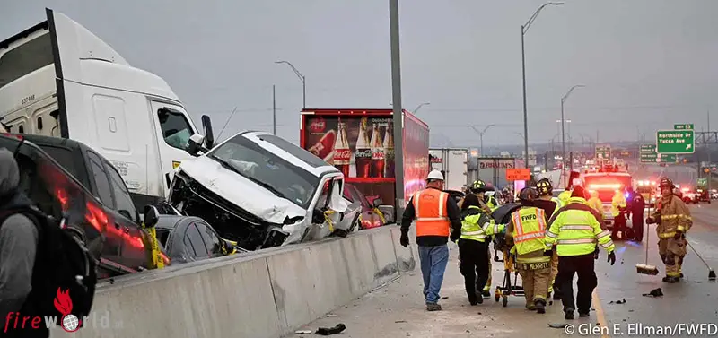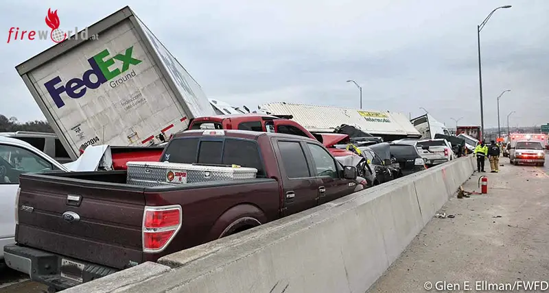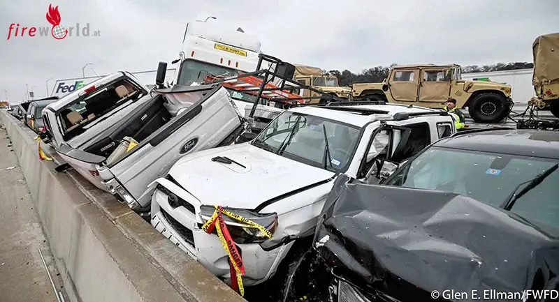 FORT WORTH (USA, TEXAS): Mindestens neun Menschen sind am Donnerstag, 11. Februar 2021, bei Autounfällen durch Winterstürme in der Texanischen Region Dallas-Fort Worth ums Leben gekommen, wie CNN berichtet. Bei einer Massenkarambolage während eines Wintersturms auf der Interstate 35 West in Fort Worth sind nach Angaben des Polizeichefs von Fort Worth sowie dem mit Fireworld.at befreundeten Fotografen Glen Ellman mindestens sechs Menschen ums Leben gekommen.