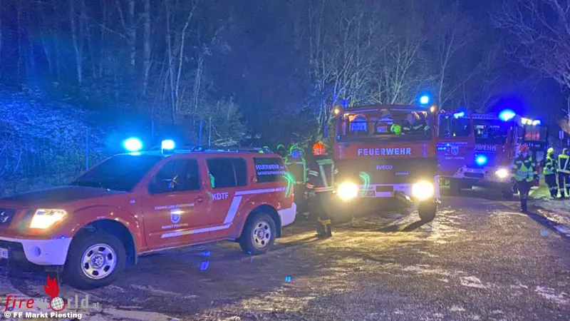 MARKT PIESTING (NÖ): Am Sonntag, den 14. Februar 2021, wurden die Feuerwehren Markt Piesting und Dreistetten um 05:39 Uhr zu einem Verkehrsunfall mit dem Hinweis „Pkw im Graben, eine Person eingeklemmt“ auf die B21 in Fahrtrichtung Wiener Neustadt kurz nach dem Feuerwehrhaus alarmiert.