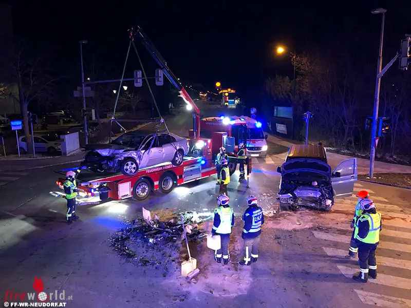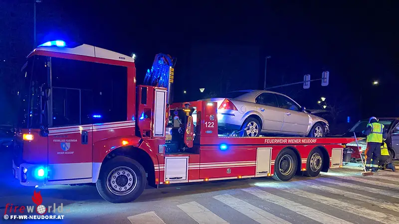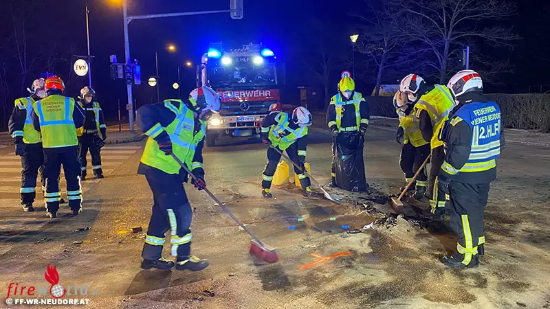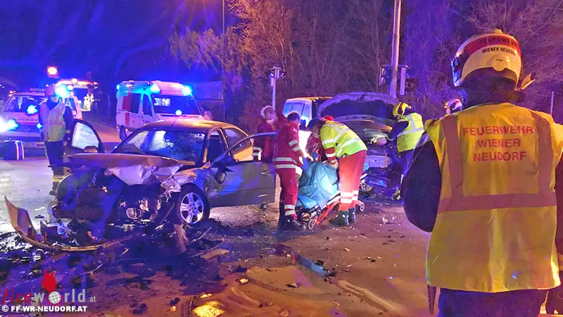 Erste Notruf-Meldungen, die besagten, dass noch eine Person im Fahrzeug eingeklemmt sei, konnten zum Glück nicht bestätigt werden. Die verletzten Insassen befand sich bereits bei Ankunft der Feuerwehr außerhalb ihres Fahrzeuges und wurden vom Notarzt des Roten Kreuz erstversorgt. Nach Abtransport der Verletzten und abgeschlossener Unfallaufnahme der Polizei, bargen die Wiener Neudorfer Feuerwehrmänner die beiden Unfallfahrzeuge mit dem Abschleppfahrzeug und reinigten die Unfallstelle.