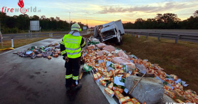Bäume im Straßengraben verhinderten ein weiteres Abrutschen des Fahrzeuges. Die Kameraden sicherten die Unfallstelle ab, unterstützten das Abschleppunternehmen und reinigten anschließend die Fahrbahn.