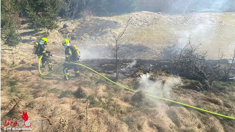 SCHARNSTEIN (OÖ): Am Montagnachmittag, 1. März 2021, wurde die Feuerwehr Scharnstein um 13:05 von der Landeswarnzentrale zu einem Böschungsbrand im Wieseck, Ortsteil Neu-Mühldorf alarmiert.