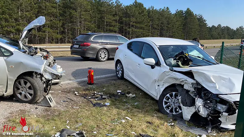 STEINABRÜCKL (NÖ): Am Mittwoch, den 3. März 2021, kollidierten am Nachnmittag zwei Pkw im Bereich einer Firmeneinfahrt auf der L151 in Steinabrückl vermutlich bei einem Abbiegemanöver. Auch ein Motorradfahrer wurde als Folgeunfall in die Kollision verwickelt.