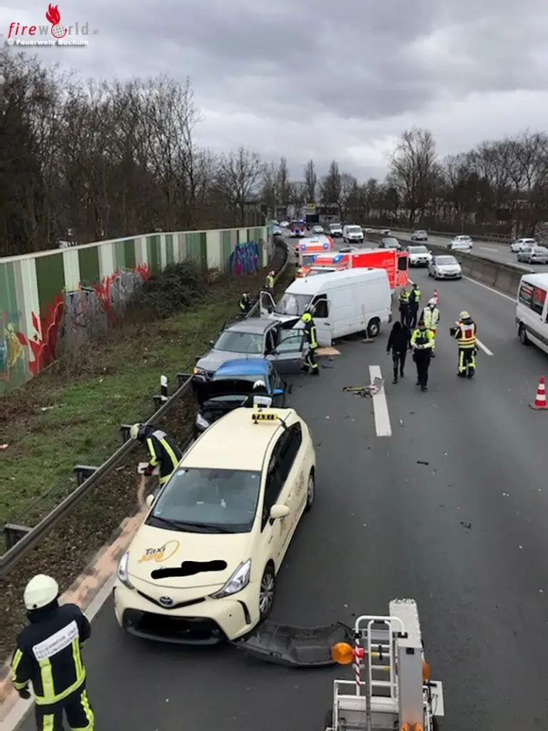 D: Fünf Verletzte bei Unfall mit vier Pkw auf der BAB 40 in Bochum