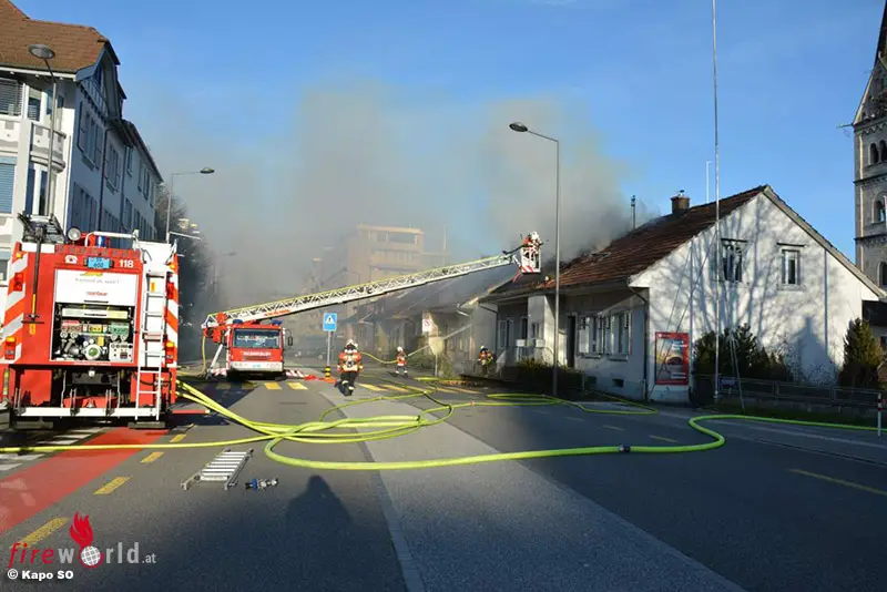 Die Feuerwehr Olten rückte umgehend vor Ort aus. Das Haus stand in Vollbrand. Die Löscharbeiten gestalteten sich schwierig. Damit das Feuer gelöscht werden konnte, musste ein Kran aufgeboten werden, um den Dachstock abzureißen und so an die Brandherde zu gelangen. Aufgrund der starken Rauchentwicklung musste die Ziegelfeldstraße für den Verkehr und die Fußgänger gesperrt werden. Der Verkehr wurde durch Mitarbeitende der Polizei über die Umfahrungsstraße und die Ringkreuzung umgeleitet. Die Sperrung konnte um 22 Uhr wieder aufgehoben werden. Personen wurden keine verletzt.