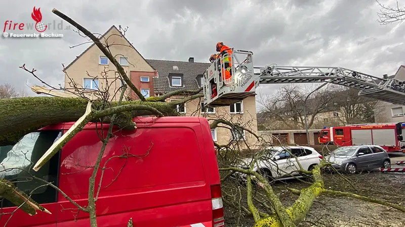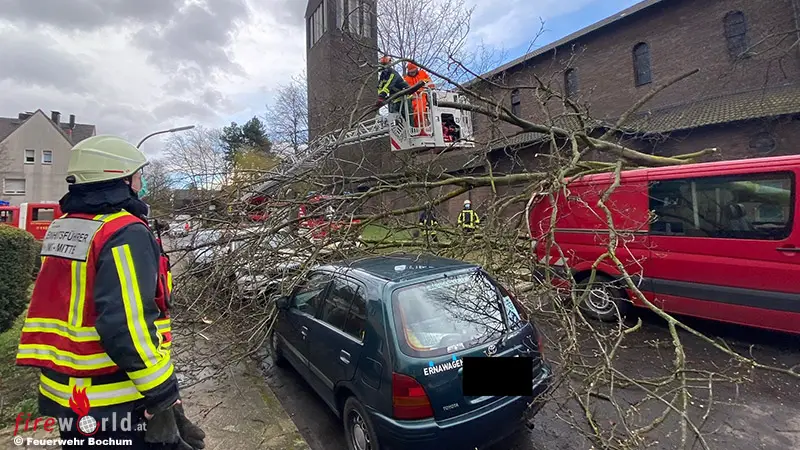 BOCHUM (DEUTSCHLAND): Zwischen 09.00 Uhr und 21:00 Uhr ist die Feuerwehr Bochum am 13. März 2021 bei 24 Unwettereinsätzen tätig geworden. Umgestürzte Bäume, lose Dachziegel und Äste beschäftigten die Freiwillige Feuerwehr und die Berufsfeuerwehr.
