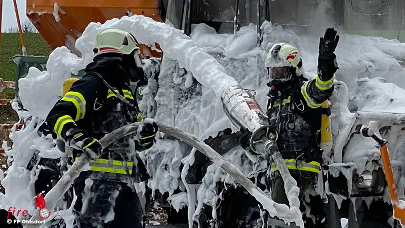 Oö: Brand eines Schneeräum-Unimogs im Gewerbepark Kleinreith in Ohlsdorf