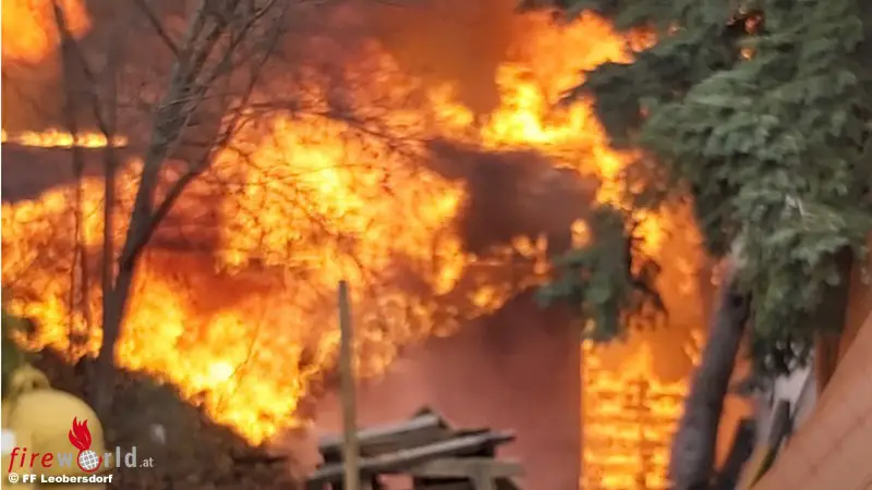 LEOBERSDORF (NÖ): Kurz nach Mittag des 15. März 2021 wurde die Freiw. Feuerwehr Leobersdorf zu einem Kleinbrand im Ortsgebiet alarmiert. Bereits bei der Ausrückemeldung wurde der Einsatzleiter von der Bezirksalarmzentrale informiert, dass bereits eine Gartenhütte und die Fassade des angrenzenden Wohnhauses in Brand stehen sollen.