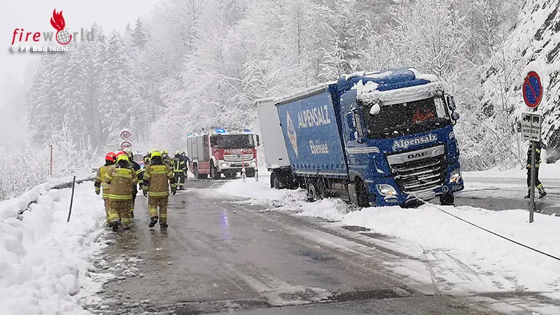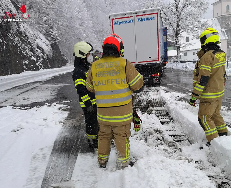 Um kurz nach halb neun Uhr wurde die Freiwillige Feuerwehr Lauffen und die Hauptfeuerwache Bad Ischl zu einer Lkw-Bergung auf der B145 in Lauffen alarmiert. Der Lenker kam mit seinem Lastkraftwagen samt Anhänger von der Fahrbahn ab und blieb auf dem Bankett einer Ausweiche hängen. Die Kameraden der Freiwilligen Feuerwehr Lauffen bzw. die anwesenden Beamten der Polizeiinspektion Bad Ischl sperrten die B145 für den Verkehr. Weiters wurde die Unfallstelle abgesichert bzw. schauten die Kameraden der Freiwilligen Feuerwehr Lauffen nach den weiteren hängen gebliebenen Fahrzeugen nach. Diese konnten nach Auflegen von Schneeketten selbst weiterfahren.