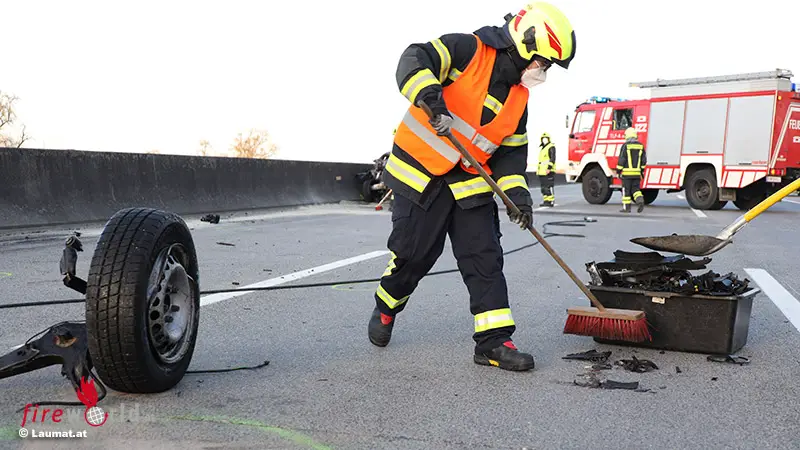 Oö: Pkw fährt auf A 1 bei Pucking auf Pritschenwagen auf