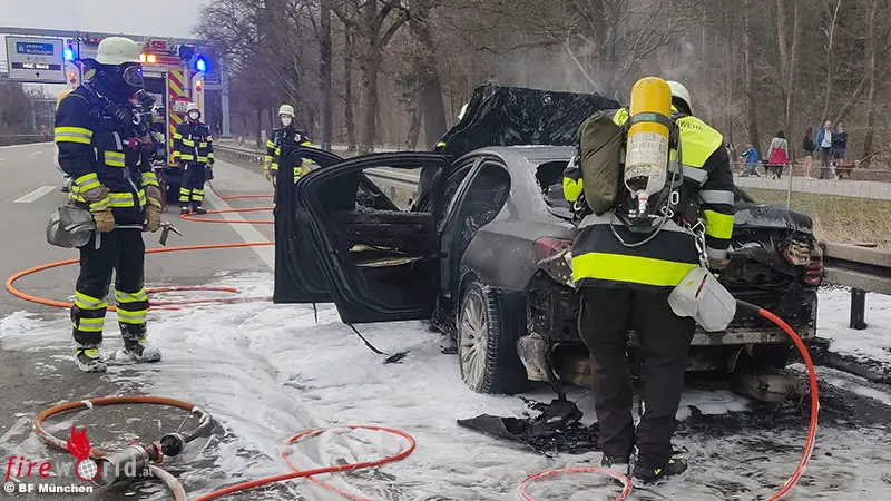 Ein 7er BMW brannte bei Eintreffen der Einsatzkräfte lichterloh. Zwei Atemschutztrupps konnten das Fahrzeug zügig löschen. An dem BMW entstand ein Totalschaden. Beide Insassen des Fahrzeuges konnten unverletzt aus ihrem Fahrzeug flüchten. Die A95 war während des Einsatzes stadteinwärts auf eine Spur verengt.