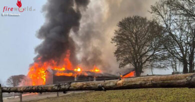 Brandaus konnte bereits um 15:50 Uhr gegeben werden. Das betroffene Grundstück der Firma Hoyos wurde mittels Wärmebildkamera auf weitere Brandherde abgesucht.