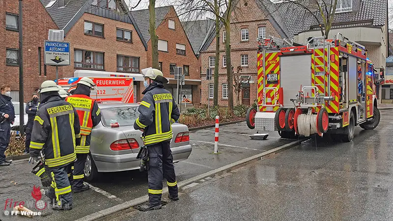 WERNE (DEUTSCHLAND): Der Löschzug 1 Stadtmitte der Freiwilligen Feuerwehr Werne wurde am Sonntagmittag, 11. April 2021, um 12:28 Uhr per Meldeempfänger mit dem Stichwort „TH_1 – Kind 1,5 Jahre sitzt im Auto, Auto verschlossen, Schlüssel im Fahrzeug“ zu einem Parkplatz an der Straße Südmauer in Werne alarmiert.