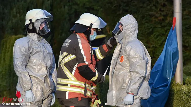 NORDERSTEDT (DEUTSCHLAND): Am Freitagabend, 16. April 2021, ist die Freiwillige Feuerwehr Norderstedt gegen 18:15 Uhr mit dem Alarmstichwort „Technische Hilfeleistung Klein – Gefahrgut“ in die Engentwiete alarmiert worden. Umgehend sind daraufhin Einsatzkräfte der Freiwilligen Feuerwehr Friedrichsgabe und der Freiwilligen Feuerwehr Glashütte, welche gemeinsam dem Gefahrgutzug der Feuerwehr Norderstedt bilden, ausgerückt.