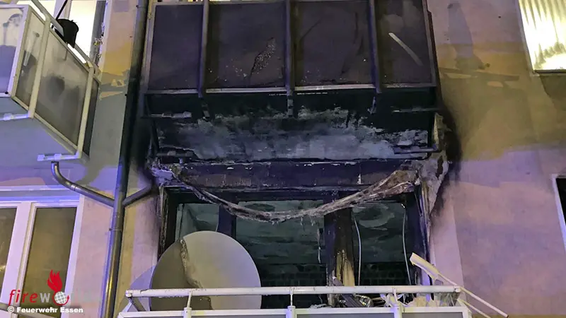 Auf der Rückseite des dreigeschossigen Gebäudes schlugen die Flammen bereits aus den geborstenen Fenstern unter die Balkone des ersten sowie zweiten Obergeschosses. Zu diesem Zeitpunkt war unklar, ob sich noch Personen in den Wohnungen befinden. Umgehend wurden zwei Trupps unter Atemschutz mit jeweils einem C- Rohr zur Menschenrettung und Brandbekämpfung in das Gebäude geschickt. Zeitgleich wurde von außen versucht, mit einem weiteren C-Rohr einen Flammenüberschlag auf die darüber liegenden Wohnungen zu verhindern. Es befanden sich zu diesem Zeitpunkt glücklicherweise keine Personen mehr in der Brandwohnung. Auch alle anderen Bewohner hatten das Gebäude bereits selbstständig verlassen.