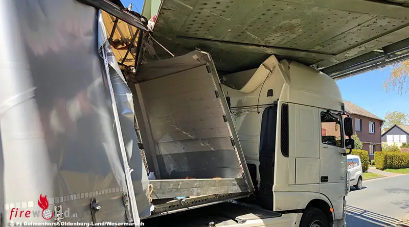 Ein 37-jähriger Lkw-Fahrer aus Hamburg hatte sich mit seinem Sattelzug verfahren und geriet in die Straße „An den Wurten“. Dabei hatte er die Höhenbegrenzung von 3,50 Metern der nicht mehr genutzten Eisenbahnbrücke übersehen. Als er versuchte, unter der Brücke durchzufahren, kam es wie es kommen musste: Die Sattelzugmaschine blieb unter der Brücke stecken und kam ohne Hilfe nicht vor und nicht zurück. Auch der Auflieger des Sattelzuges wurde erheblich beschädigt. Der Lkw-Fahrer wurde bei dem Verkehrsunfall glücklicherweise nicht verletzt.
