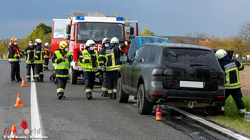 GEDERSDORF (NÖ): Am Nachmittag des 30. April 2021 bemerkte der Lenker eines SUV Rauch aus dem Motorraum seines Pkw. Unverzüglich stellte dieser das Fahrzeug an der S5 Abfahrt bei Theiß/Gedersdorf ab, wählte den Feuerwehrnotruf 122 und versuchte, den Entstehungsbrand selbst abzulöschen.