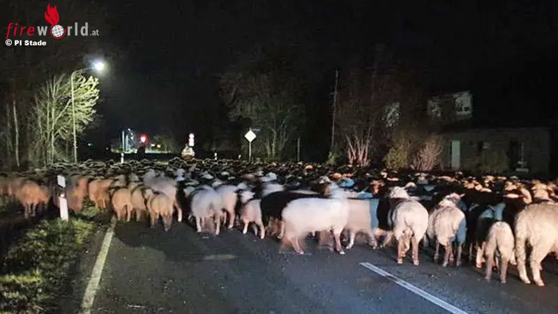 DROCHTERSEN (DEUTSCHLAND): In der vergangenen Nacht kam es in Drochtersen im Landkreis Satde auf der Landesstraße 111 zu einem tierischen Einsatz. Ein aufmerksamer Verkehrsteilnehmer hatte gegen 00:20 Uhr eine Schafherde bemerkt, die sich offenbar selbständig gemacht hatte und auf die Fahrbahn gelaufen war. Ca. 300 Schafe blockierten so die Straße.