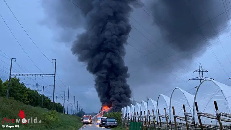 ARDON (SCHWEIZ): Am Sonntag, 16. Mai 2021, wurde in Ardon ein landwirtschaftlicher Hangar durch einen Brand komplett zerstört. Verletzt wurde dabei niemand.