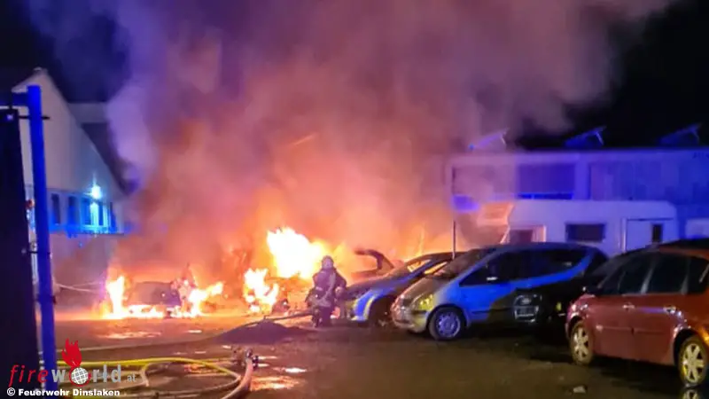 D: Vier Pkw brennen auf Hinterhof einer Kfz-Werkstatt in Dinslaken