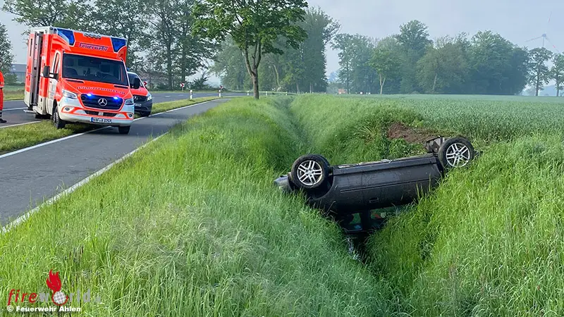 AHLEN (DEUTSCHLAND): Auf der Straße Halene-Kampen kam es gegen 07.28 Uhr des 19. Mai 2021 zu einem Verkehrsunfall. Ein Pkw-Fahrer hatte in einer Kurve die Kontrolle über sein Fahrzeug verloren.