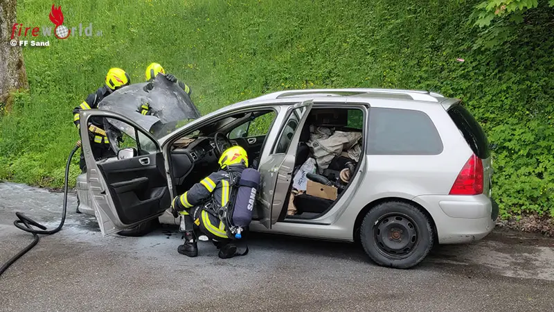 GARSTEN (OÖ): Am Pfingstmontag, 24. Mai 2021, wurde die Feuerwehr Sand um 15:40 Uhr zu einem Autobrand beim Kraftwerk Rosenau alarmiert.