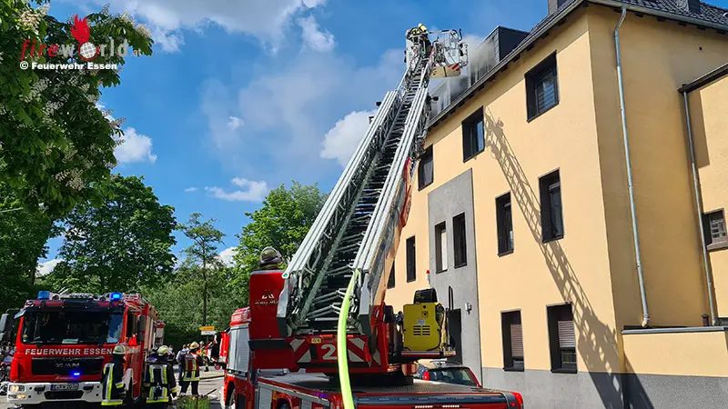ESSEN (DEUTSCHLAND): Am Nachmittag des 28. Mai 2021 ist im Dachgeschoß eines viergeschossigen Mehrfamilienhauses in der Unterstraße im Ortsteil Essen-Frintrop ein Brand ausgebrochen. Ein Nachbar aus dem Wohnhaus hörte den Warnton eines ausgelösten Heimrauchmelders vor der Brandwohnung im dortigen Hausflur und alarmierte umgehend die Essener Feuerwehr.
