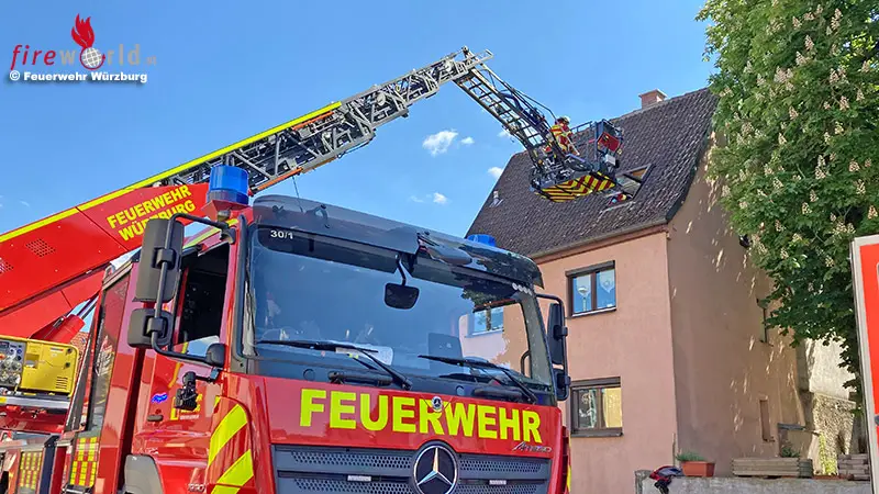 WÜRZBURG (BAYERN): Am Montagnachmittag, 31. Mai 2021, wurde die Berufsfeuerwehr Würzburg zur Unterstützung des Rettungsdienstes in ein Anwesen in Versbach gerufen. Die Person konnte mit der Drehleiter aus dem Dachgeschoss gerettet und sicher zu Boden gebracht werden.