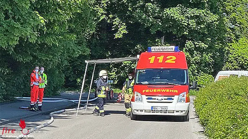 FREILASSING (BAYERN): Am Dienstagvormittag, 1. Juni 2021, mussten kurz nach 9 Uhr Feuerwehr und Rotes Kreuz ins Neubau-Gebiet Am Naglerwald ausrücken, wo ein Bagger die Erdgas-Leitung aufgerissen hatte. Die Einsatzkräfte sperrten das Gebiet ab und standen zur Absicherung bereit, mussten aber zum Glück keine Verletzten versorgen.