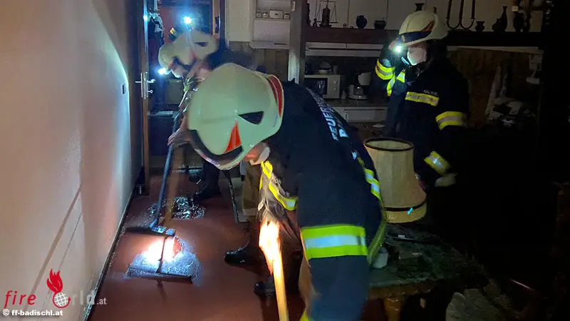 In der Wohnung wurde ein Schaden in der Warmwasserleitung festgestellt. Das Wasser suchte sich seinen Weg nach unten und trat in der Wohnung im 1. Stock aus. Der Schaden dürfte hoch sein. Erst nach Mitternacht konnten die Kameraden der Feuerwache Ahorn-Kaltenbach einrücken.
