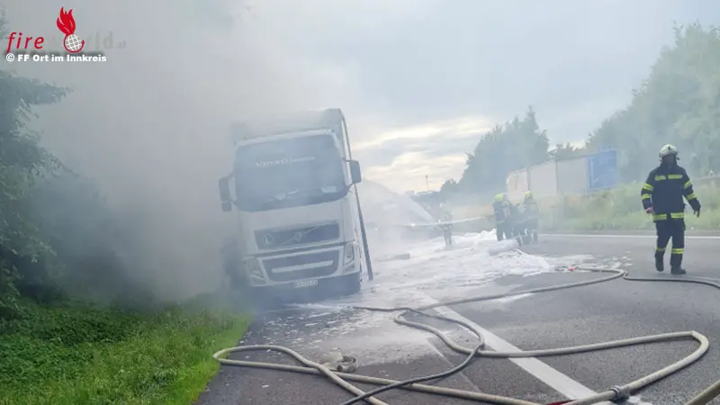ORT IM INNKREIS (OÖ): Am 5. Juli 2021 wurde die Freiw. Feuerwehr Ort im Innkreis am späten Nachmittag (17.51 Uhr) zu einem Lkw-Brand auf der A8, Fahrtrichtung Voralpenkreuz, alarmiert.