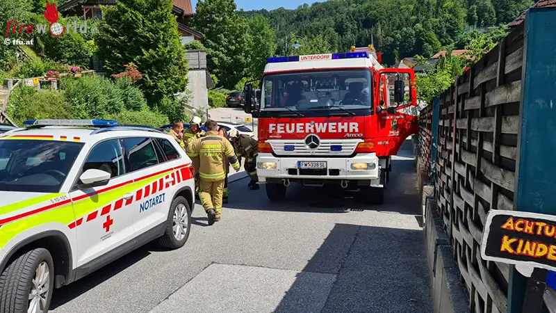 PLAINFELD (SBG): Um 15:03 Uhr wurde die Feuerwehr Thalgau mit dem LZ Unterdorf am 12. Juli 2021 in die Nachbargemeinde zu einer Menschenrettung alarmiert. Eine Person war nach einen Sturz im Rollstuhl eingeklemmt.
