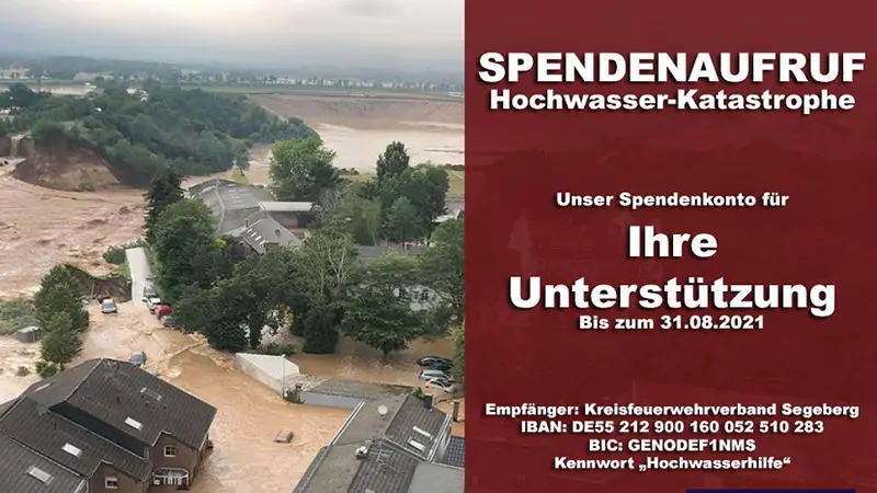 D: Kreisfeuerwehrverband Segeberg → Hilfeaufruf für Einsatzkräfte im Kataststrophengebiet
