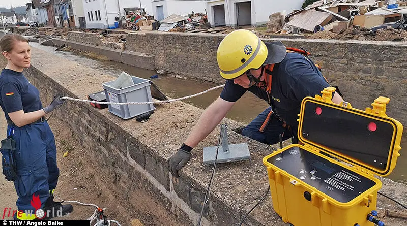 Deutschland: THW Bayern → mobile Hochwasserpegel in den Krisengebieten wegen Starkregenwarnung im Einsatz