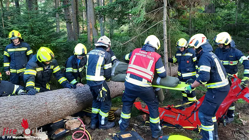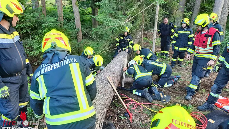 Nö: Zwei Feuerwehren beüben Forstunfall in Waidhofen an der Thaya