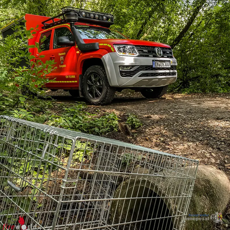 ENNEPETAL (DEUTSCHLAND): Am 30. Juli 2021 wurde die Feuerwehr Ennepetal gegen 15:30 Uhr zur Heilenbecker Talsperre alarmiert. Ein sichtlich geschwächter Fuchs befand sich am Ufer der Heilenbecke. Der Fuchs der bekanntlich als schlaues Tier gilt , flüchtete beim ersten Annäherungsversuch schlagartig in einen Entwässerungsschacht und lies sich durch die Einsatzkräfte nicht weiter beirren.