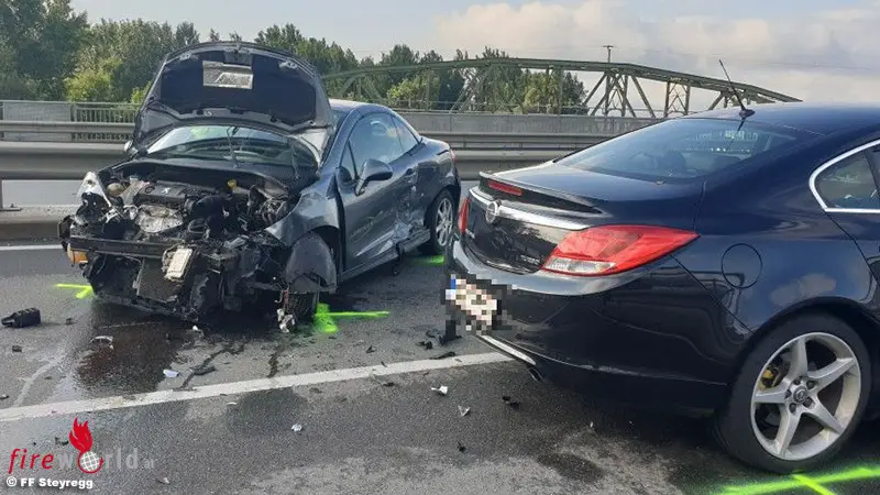 Direkt nach der Auffahrt auf die Steyreggerbrücke verlor ein 59-jähriger Mann aus unbekannter Ursache die Kontrolle über sein KFZ und geriet ins Schleudern. In weiterer Folge touchierte er die Leitplanken und schlitterte in das KFZ eines 28-jährigen Verkehrsteilnehmer welcher dem Unfall nicht mehr ausweichen konnte. Beim Eintreffen der Feuerwehr wurden die Unfallbeteiligten Personen bereits von der Rettung betreut.
