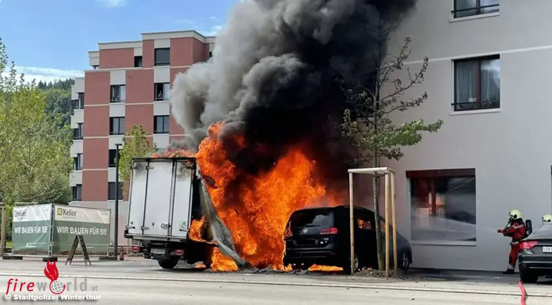 WINTERTHUR (SCHWEIZ): Kurz nach 11:30 Uhr ging am 10. August 2021 die Meldung ein, dass in einem Lieferwagen, welcher neben einem Wohnhaus parkiert war, ein Feuer ausgebrochen sei. Wenig später erfolgte eine weitere Meldung, dass ein nebenan abgestelltes Fahrzeug ebenfalls Feuer gefangen habe.