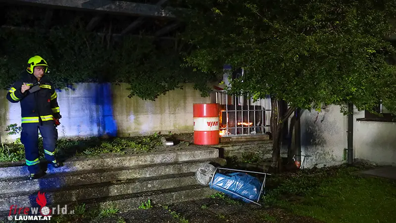 Der Inhalt einer Konstruktion aus einem alten Fässern beziehungsweise einem Ofenrohr brannte aus bisher unbekannter Ursache. Die Feuerwehr löschte das Feuer, ein Übergreifen auf eine Holzkonstruktion an der Rückseite des Gebäudes konnte erfolgreich verhindert werden.