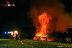 Ein Großteil des Gebäudes stand beim Eintreffen der ersten Feuerwehren bereits in Vollbrand.