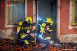 Eine Brandbekämpfung im Gebäudeinneren konnte aufgrund der hohen Brandlast und der damit einhergehenden Einsturzgefahr nur mehr bedingt vorgenommen werden. Mehrere Atemschutztrupps konnten jedoch ein Übergreifen des Feuers auf das angrenzende Wohnhaus und auf ein weiteres Gebäude erfolgreich verhindern. Für die Füllung der benötigten Atemluftflaschen wurde die Feuerwehr St. Stefan i.R. mit einer mobilen Füllstation nachalarmiert.
