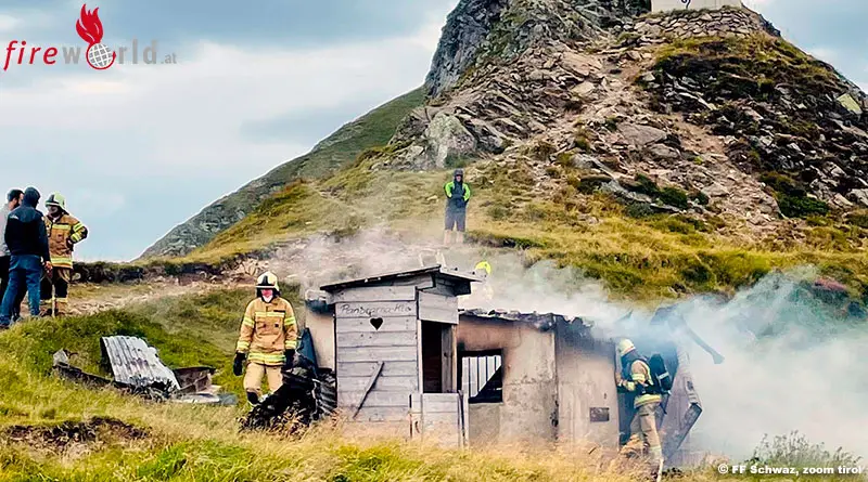 SCHWAZ (TIROL): Am Sonntag, dem 22. August 2021, verursachte ein Blitzschlag im Bereich einer Berghütte den Brand eines Lagergebäudes. Durch die Lage der Hütte auf 2.237 Metern Seehöhe und einer fehlenden Zufahrtsstraße musste der gesamte Einsatz mit Hilfe von Hubschraubern abgewickelt werden.