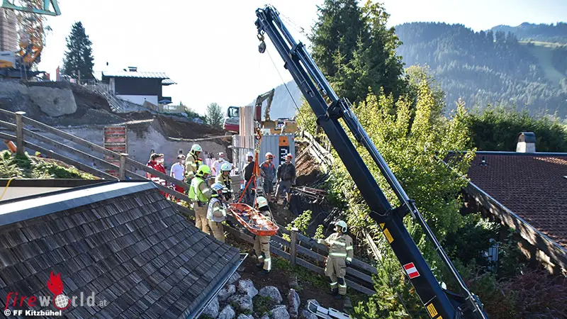 KITZBÜHEL (TIROL): Am Mittwochfrüh, 8. September 2021, wurde die Feuerwehr Kitzbühel vom Rettungsdienst zur Unterstützung alarmiert. Nach einem medizinischen Notfall auf einer Baustelle in Kitzbühel galt es, den Patienten nach der Versorgung durch das Rote Kreuz möglichst schonend und zwingend liegend aus einer Höhe sicher auf das Straßenniveau zum weiteren Transport zu verbringen.