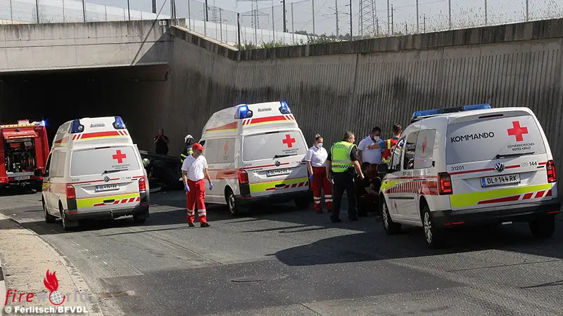 Während die Kameradinnen und Kameraden der Feuerwehr zunächst die Unfallstelle absicherten und einen Brandschutz errichteten, kümmerten sich die Sanitäter des Roten Kreuzes um die beiden Insassen, zur Sicherheit wurde auch der Rettungshubschrauber angefordert. Nach dem Check durch die Notärztin des wenig später an der Einsatzstelle eingetroffenen Christophorus 12 wurde das Kind mit seiner Mutter zur weiteren Untersuchung ins Krankenhaus geflogen. Die Fahrerin des Pkw wurde ebenso zur weiteren Abklärung vom Roten Kreuz ins Krankenhaus gebracht.