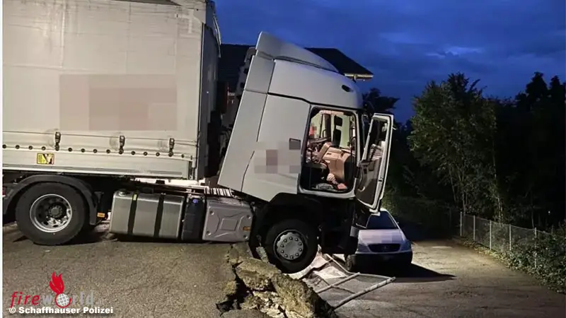 NEUHAUSEN (SCHWEIZ): In Neuhausen am Rheinfall (SH) ist es am Mittwochabend, dem 16. September 2021, zu einem spektakulären Zwischenfall mit einem Sattelmotorfahrzeug gekommen.