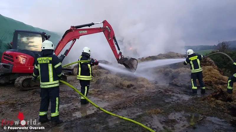 Es hatten sich mehrere Heuballen entzündet und das Feuer hatte sich bereits auf die angrenzende Böschung ausgebreitet. Um ein Übergreifen auf den naheliegenden Wald zu verhindern, wurde eine sogenannte Riegelstellung aufgebaut. Brennende Heuballen mussten mit Radladern an exponierten Stellen auseinandergezogen und abgelöscht werden.
